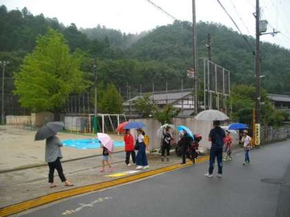 三連休明けの今日は,雨がしとしとと降っています。PTAの方々が校門前で子どもたちに声をかけていただきました。