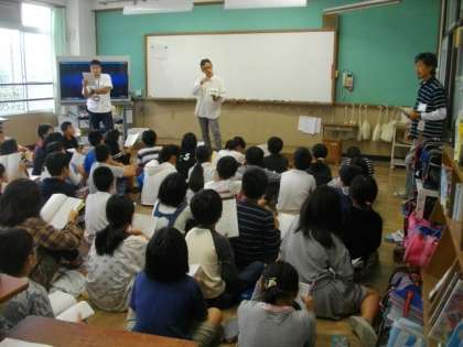 5年生は,山の家の活動について,鞍馬小学校のお友達と合同で話し合いをしています。