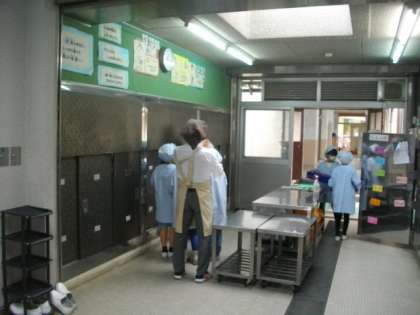 給食の準備をしています。