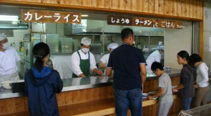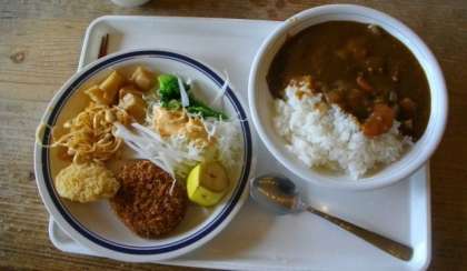 昼食のメニューは、カレーとラーメンです。副菜はバイキング形式でいただきました。