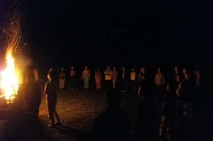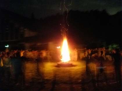 燃え上がる炎とともに、歌やゲームが始まりました。