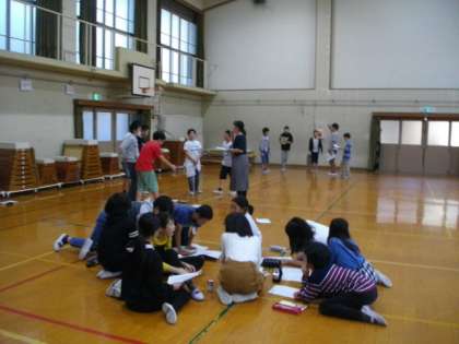 6時間目には,体育館で6年生が学芸会の練習をしています。