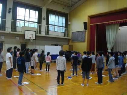 六年生が,合唱の練習をしています。体育館に,美しい歌声が響いています。