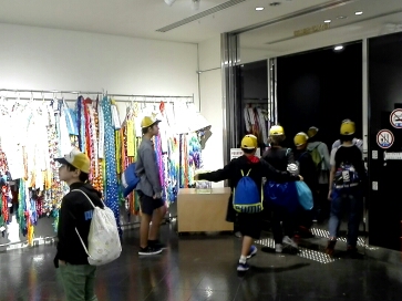 施設の見学をしています。みんな真剣です。