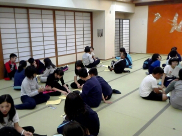最後に反省会をしています。お友達のいいところたくさん見つけて発表していました。