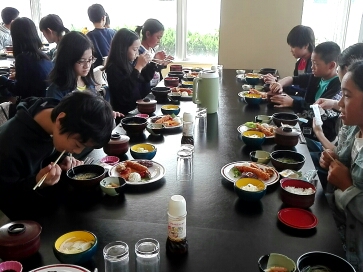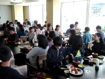 道の駅うずしおで昼食を食べています。玉ねぎのサラダはとても美味しかったそうです。