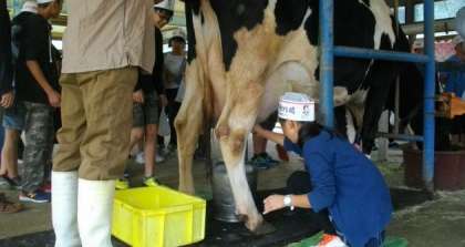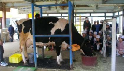 牧場では,牛の乳しぼり体験をしました。