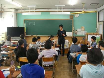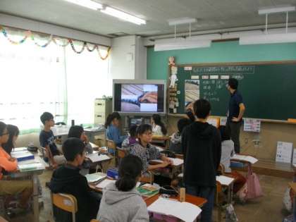 6年生は,理科で地層の写真をみながら,どのような学習を進めるのか,また進めたいのか,意見を交換しています。