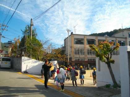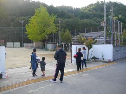さわやかな秋晴れとなりました。子どもたちが登校してきました。