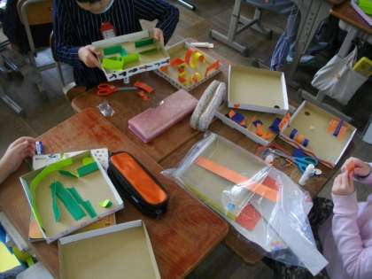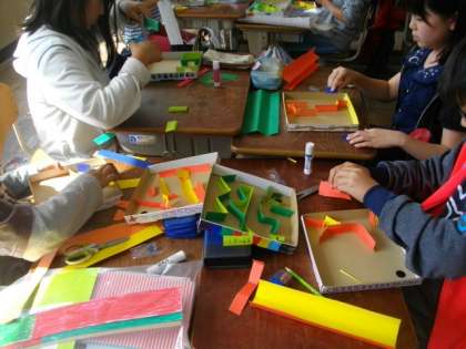 図画工作科で,迷路づくり「コロコロガーレ」の制作に取り組んでいます。