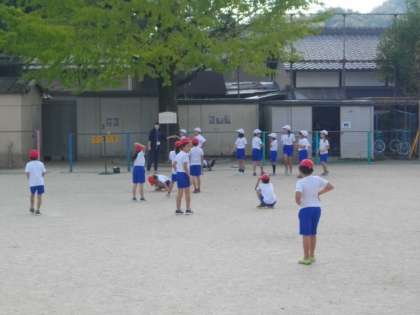 3年生が体育に取り組んでいます。2年生は生活科で秋の生き物みつけで,校舎内をまわっています。