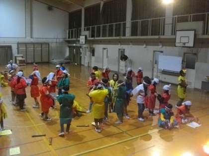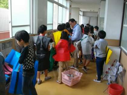 4年生の学芸会の練習風景です。衣装合わせも始めました。