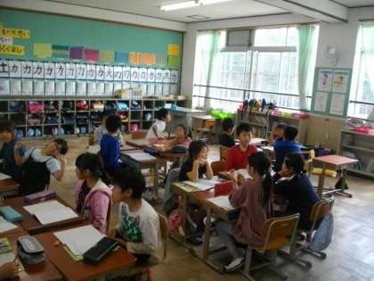 6年生は,家庭科でエプロンづくりに取り組んでいます。3年生は,新聞づくりで,話し合いをしています。