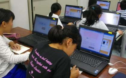 ジュニア京都検定の受検に向けて,PCを使いながらクイズ形式で学習を進めています。一人1台使える環境が整ったので,より効率よく学習を進めることができます。