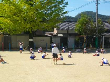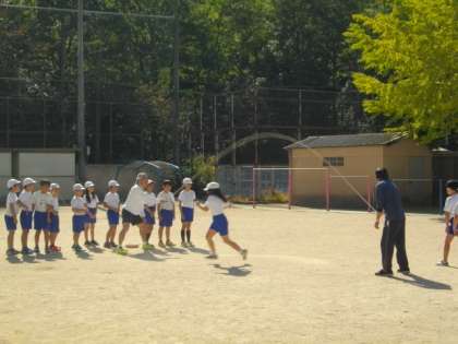 4年生が体育で大なわとびにチャレンジしています。