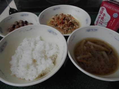 今日の給食には,さといも・とら豆・ごぼう・しいたけ・しめじなどの旬の食材がたくさん使われていました。