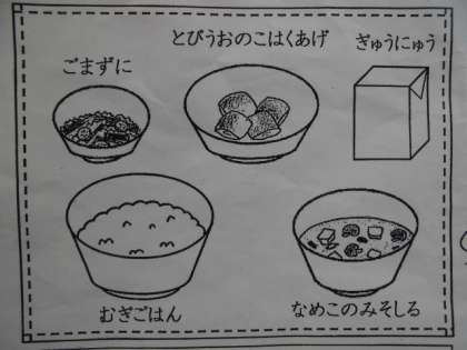 今日の給食の飛魚は,京都産の飛魚を使っています。地産地消の献立です。