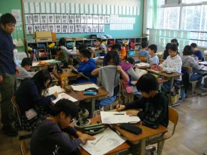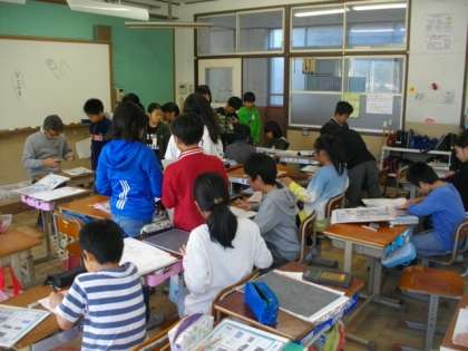 5年生が図画工作科で版画の下絵づくりに取り組んでいます。