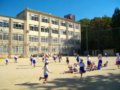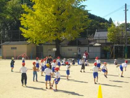 1年生が,体育で縄跳びとランニングに取り組んでます。