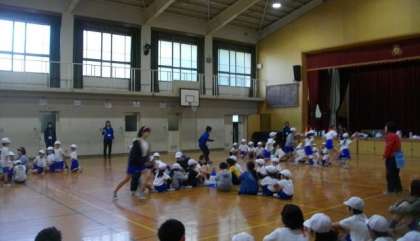 体育館ではたてわり遊びが始まりました。