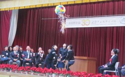 くす玉からは,社会福祉協議会発足30周年をお祝いするメッセージが飛び出しました。