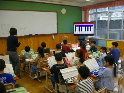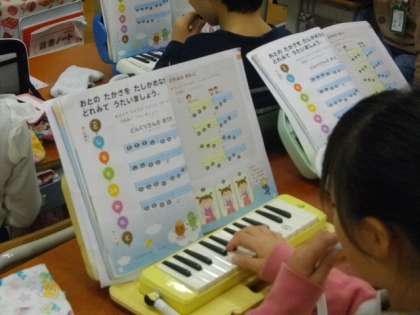 1年生が,音楽の時間に鍵盤ハーモニカを使って演奏をしています。
