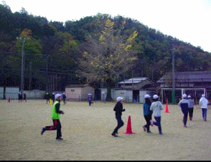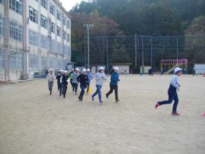 今日は,高学年の児童が,朝マラソンに取り組みました。もくもくと走っています。