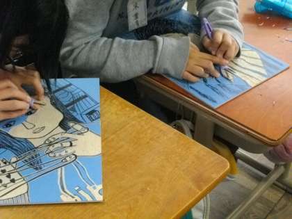 6年生が図画工作科で版画の制作に取り組んでいます。