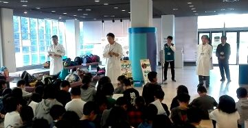4年生は,最初に展示コーナーでグループごとに学習をしました。
