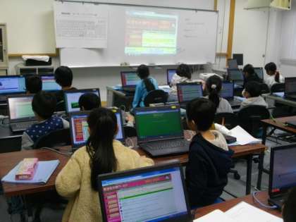2年生が,コンピュータ室で,生き物しらべをしています。