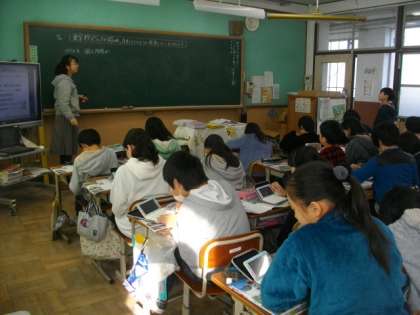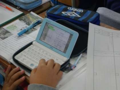6年生の学習の様子です。とても集中して学習をします。社会科では,電子辞書を使いながら難しい言葉はすぐに調べるようにしています。