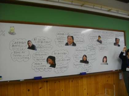 これから,自分や友達,家族や先生の「にこにこ」を増やすために自分のできることを考え,計画を立てて実行することができるように話し合っています。