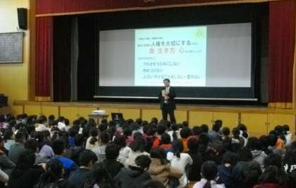 今日の朝会では,最初に西田校長先生から,絵本「ふゆじたくのおみせ」の読み聞かせがありました。画面いっぱいに広がるすてきな絵をみながらお話を聞き,みんなで「笑顔あふれる楽しい学校」をつくるため,「友達のために」「自分のために」何ができるのかを,一人一人が考える機会になりました。