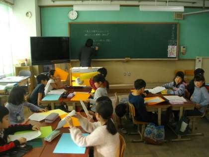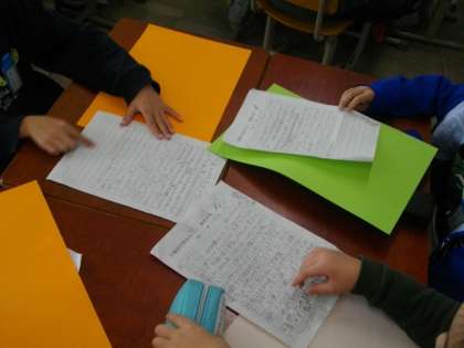 3年生は,地域の織物工場について調べていました。今日から,パンフレットづくりに取り組み始めました。