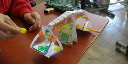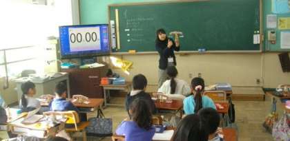 3年生の学習の様子です。手作りのてんびんをつかって,重さを比べています。