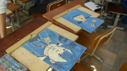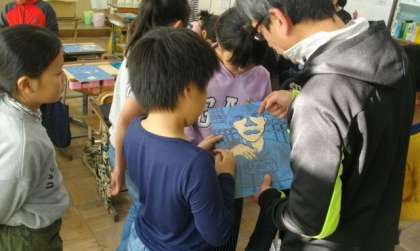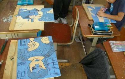 細かいところまで丁寧に彫り進めているので,覗き込んでいる友達からもすごい,と声が上がっています。