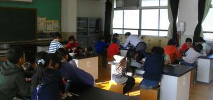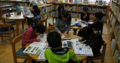 4年生は理科で「空気のあたたまり方」を実験で確かめています。同じく4年生は,図書館で調べ学習をしています。