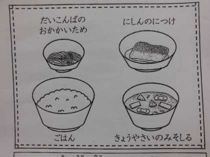 ・京野菜の味噌汁の味が濃くて飲みやすかったです。いつもとちがうからだと思います。しかも味噌汁の中に京野菜が入っていて,いろいろな食べ物の食感を楽しむことができました。ありがとうございました。