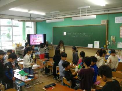 2年生は,ストローで作った作品の紹介をお友達同士ですすめています。