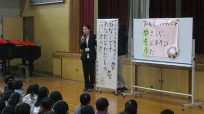 先週,校長先生から絵本の読み聞かせがあり,友達を大切にすることについて考える機会がありました。今日の朝会では,教頭先生から人権標語の紹介があり「みんなのために何ができるのか,考えて行動できると素敵ですね」というお話がありました。