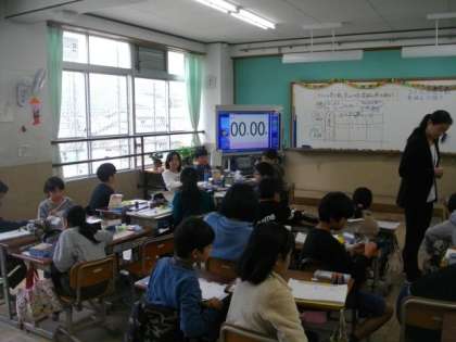 5年生は,理科で電磁石の性質を調べています。4年生は算数の学習をすすめています。