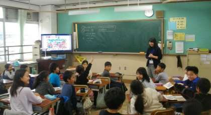 隣のクラスでは,外国語の活動を楽しそうに進めています。
