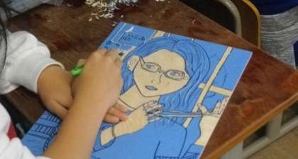 6年生が,版画作品の制作に取り組んでいます。