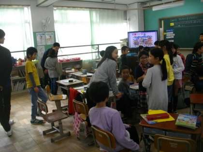 3組は,北総合支援学校のお友達と交流学習をしました。3年生2組では,静原小学校のお友達と外国語の活動で交流学習をしました。
