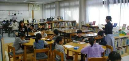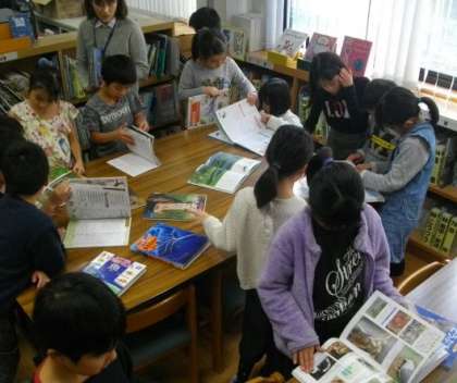 となりの図書館では,3年生が司書の先生にお世話になりながら,昆虫に体のつくりについて調べていました。