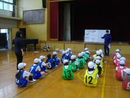 3年生が体育でエンドボールに取り組んでいます。作戦タイムを使って,どうすればうまくボールを運べるかを考えています。今日も静原小学校のお友達といっしょにチームを組んで,元気いっぱいに活動することができました。