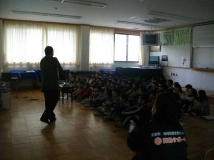 4年生が総合的な学習の時間にゲストティーチャーをお招きし,お話を聞いています。