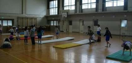 体育館で体育をしています。