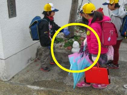 学校より北の方から通勤する職員の自宅まわりには,少しばかり降雪があったとのことで,今年初めての「雪だるま」が届きました。
