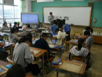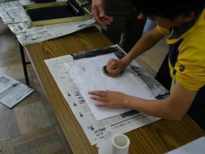 5年生が,図画工作科で版画制作に取り組んでいます。